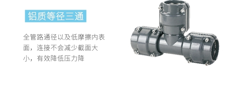 特別設(shè)計的防腐蝕性配件可將泄露的風(fēng)險降低,并可保證長時間壓降穩(wěn)定,減少不必要能源浪費;鋁質(zhì)內(nèi)光滑表面能以更少壓降提供更多的氣流,從而顯著的降低您的運行成本;精準的管路直徑預(yù)防變徑壓降,部件的全通徑設(shè)計降低壓力降;